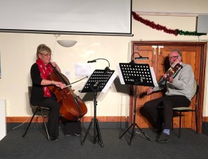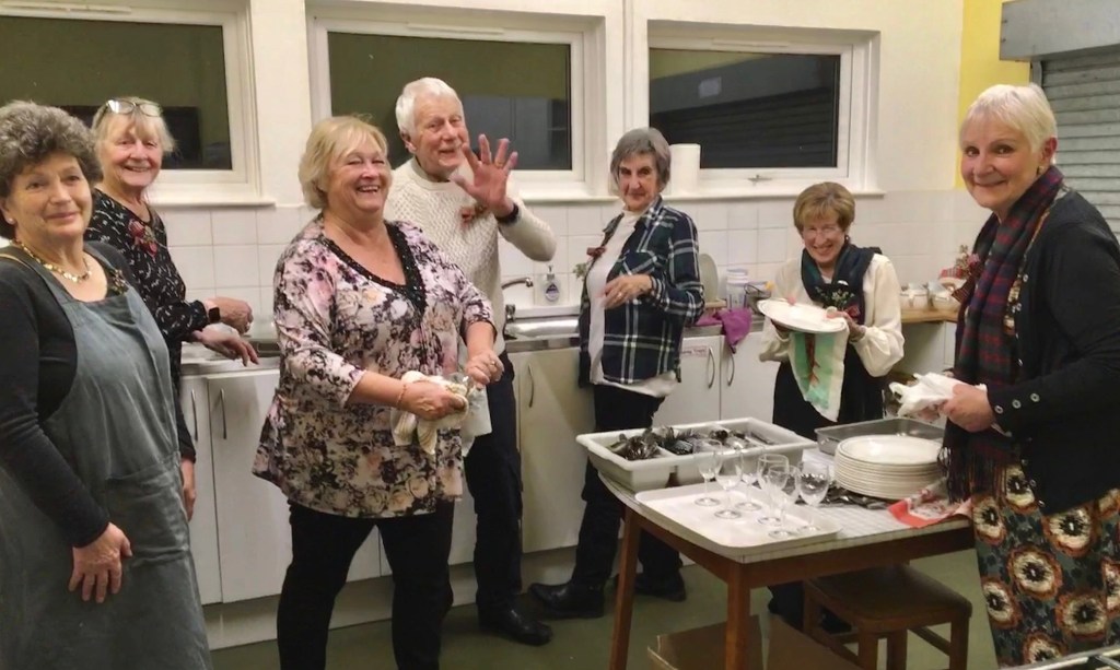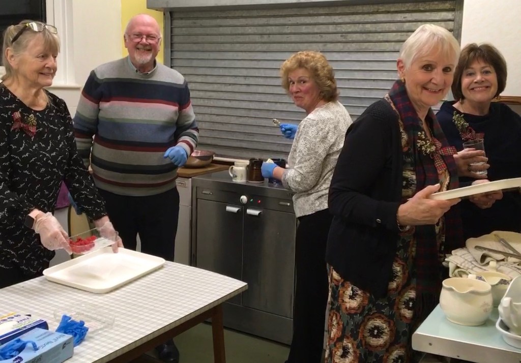 Following a welcome by the Chair, Alison Currah, members sang the National Anthem accompanied by none other than Looe & District u3a’s own ‘Kings’, Marilyn and Peter, on cello and viola respectively. The King was toasted and members left the hall happy and very full!