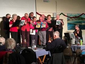 After a full evening, Alison Currah, the organiser of the event brought the show to an end with a rendition of ‘Dream a Little Dream of Me’ in which she thanked the performers for giving their time and talents, and the audience for attending and being so appreciative. Everyone joined in with the final chorus. Chris Barwell, chair, expressed her thanks on behalf of all present and presented Alison with a plant.