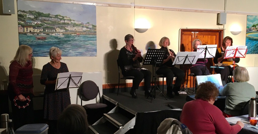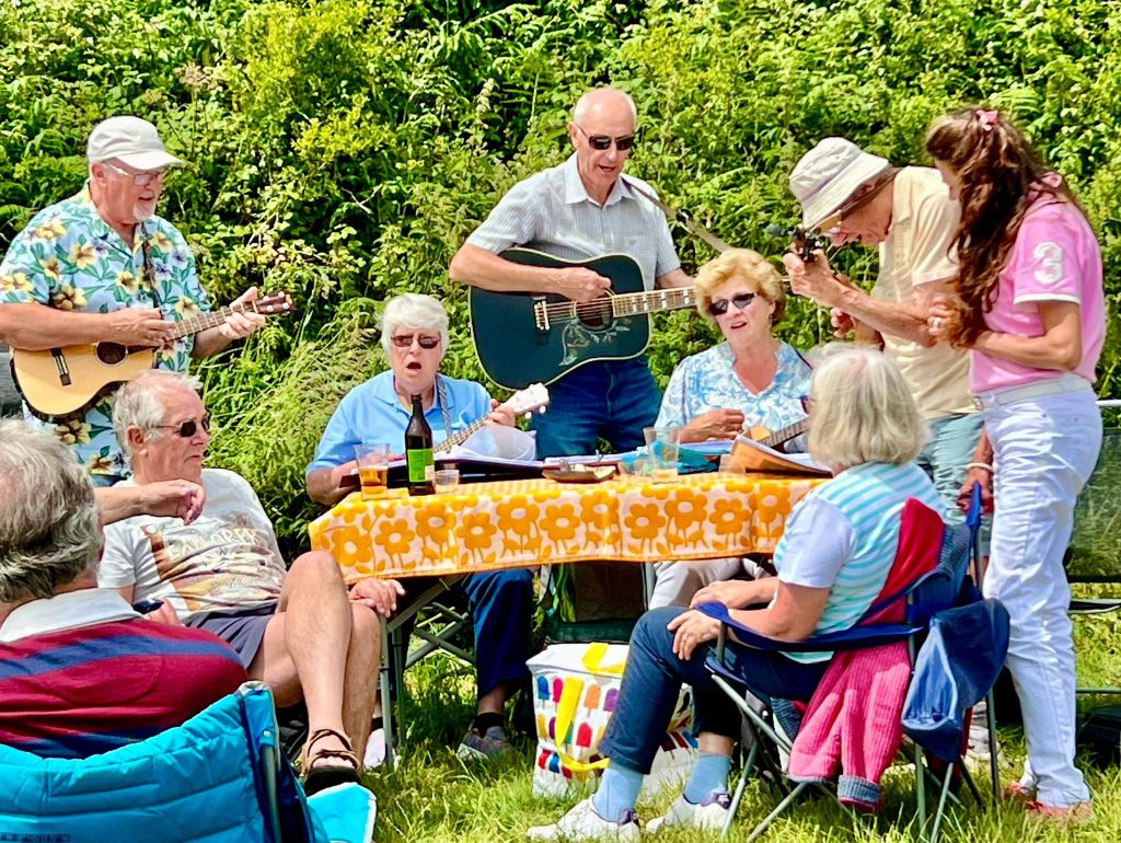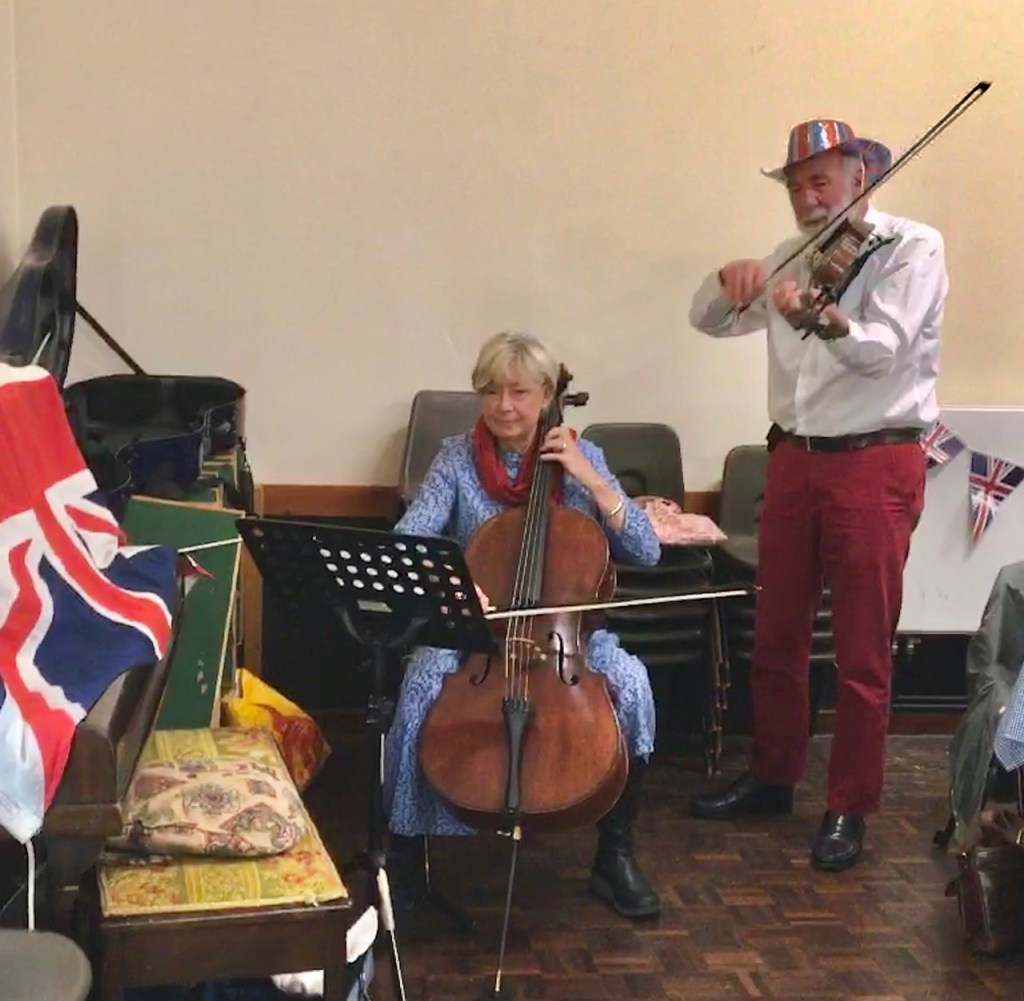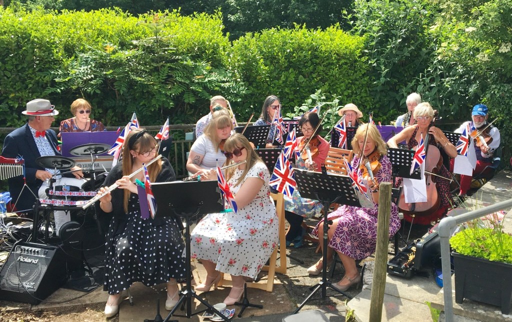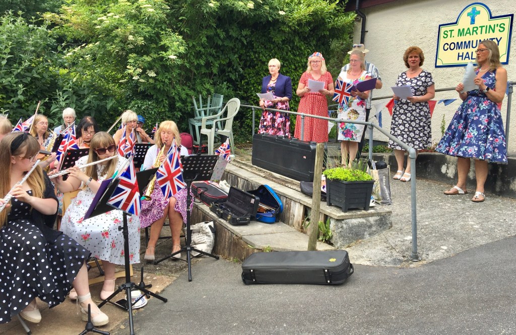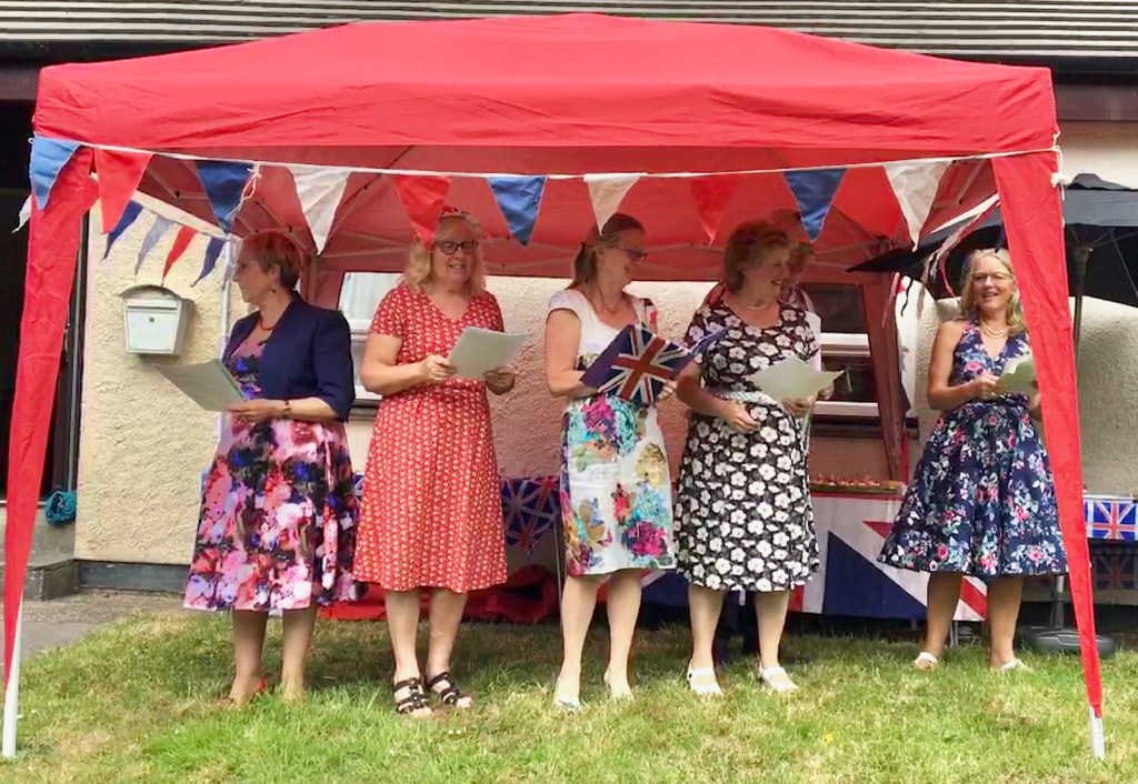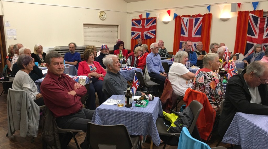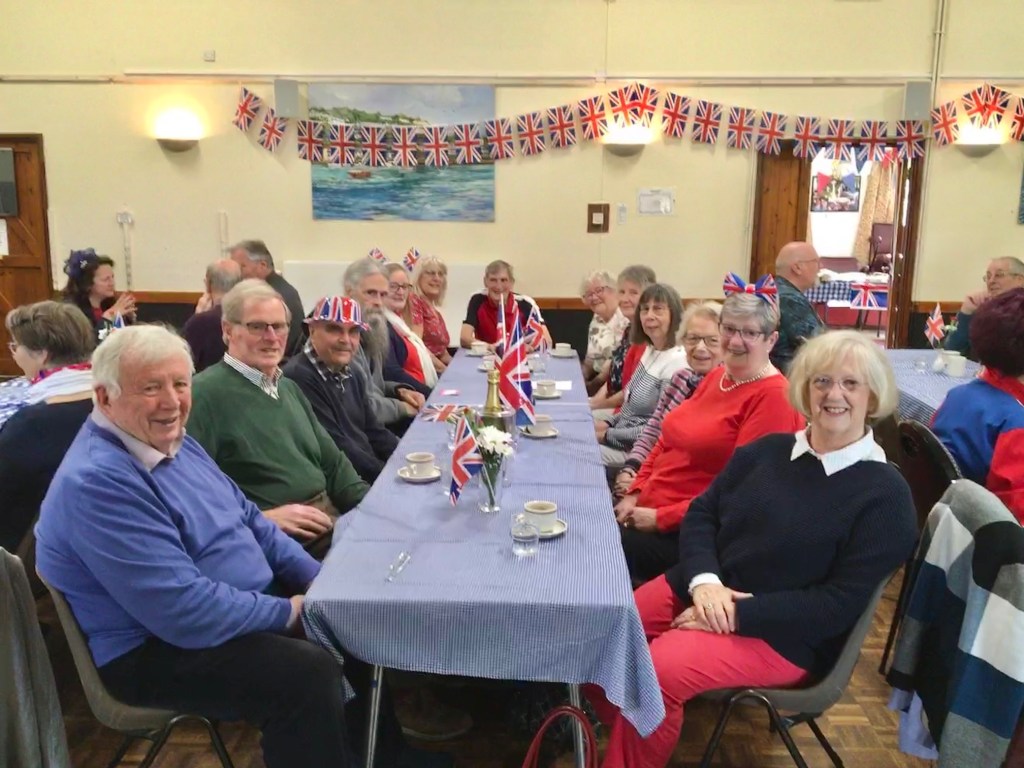 Entertainment was provided by u3a member and Leader of Lanreath Community music, Helen White along with her band and some members of the choir. Pieces included patriotic numbers such as ‘I Vow to Thee my Country’, Land of Hope and Glory’ and ‘Rule Britannia’ and members were encouraged to join in with 50s songs such as ‘Blue Suede Shoes’, ‘In the Mood’ and ‘Rock Around the Clock’. The afternoon’s festivities were drawn to a fitting close with a rousing rendition (and 3 verses too!) of God Save Our Gracious Queen.