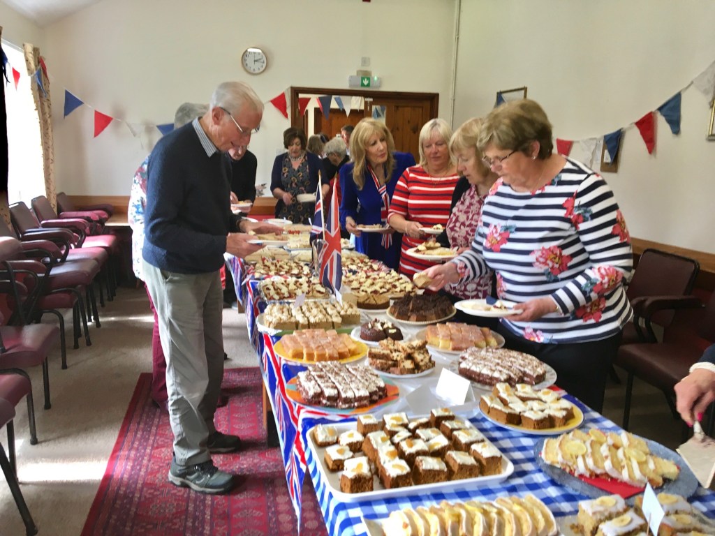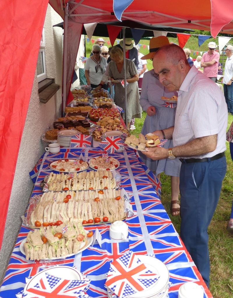 The Committee provided a wonderful spread of traditional favourites including Coronation chicken sandwiches, Scones, jam and cream and Victoria sandwich and much, much more: the tables were groaning.